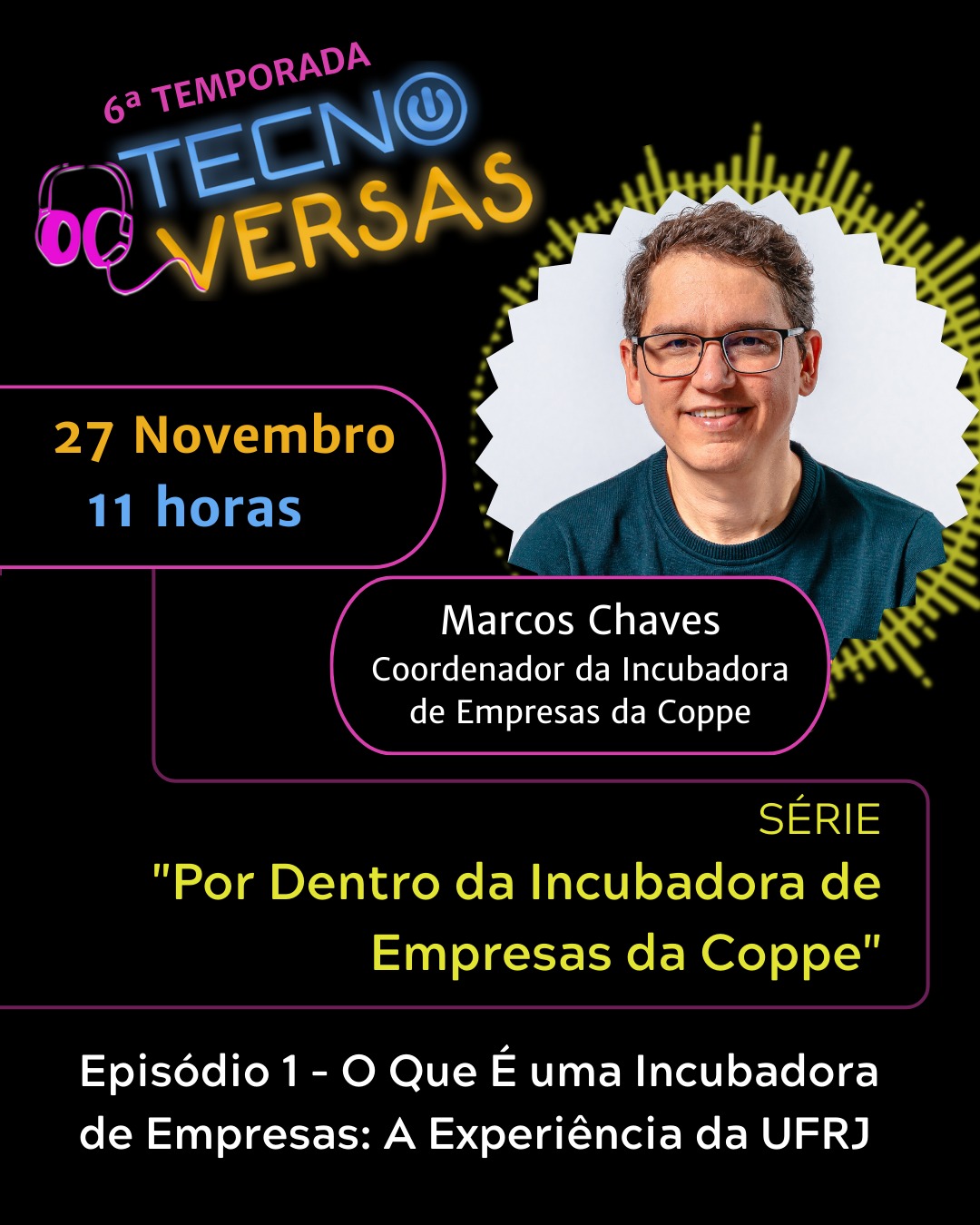 No primeiro programa da série, vamos receber Marcos Chaves, coordenador da Incubadora de Empresas da Coppe, para nos contar como a incubadora vem atuando para apoiar o desenvolvimento de novos negócios, especialmente aqueles em fase inicial, as chamadas startups, com infraestrutura, suporte técnico e um ambiente favorável para que elas possam amadurecer e conseguir investidores para viabilizar seus negócios. Vem saber mais e acompanhe os próximos episódios!