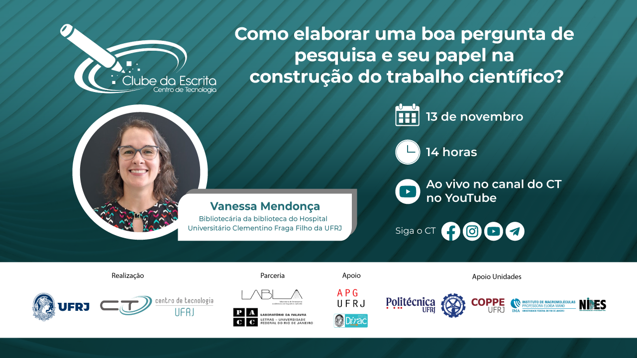 Categorias Notícias Tags Centro de Tecnologia da UFRJ, Clube da Escrita do CT, Coordenação de Integração Acadêmica do CT, Escrita Acadêmica, escrita científica, UFRJ